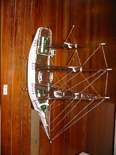- Bergantín Goleta de tres paus, está sen velame. O casco é de cor branco, verde e marrón. Ten un áncora a cada lado da proa. Ten tres botes salvavidas e unha escotilla para baixar. O temón é de pala.