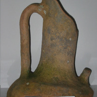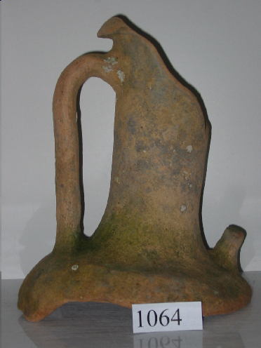 - Non é unha ánfora completa, só está o comezo dos hombros, o pescozo e parte da boca. Unha das asas está completa, da outra só queda o arranque inferior. O pescozo é moi alto, e a boca está partida.