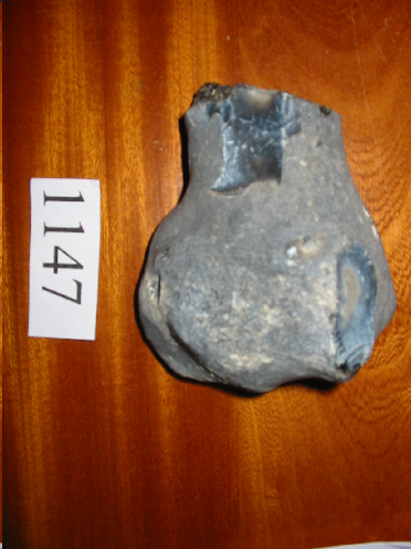 - Pedra de ribeira de cor grisáceo, con dúas texturas, a parte interior é máis pulida que a exterior.