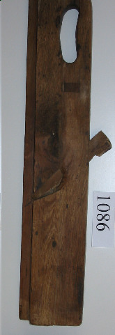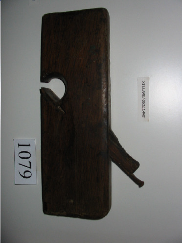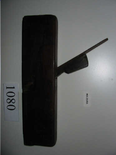 Ferramenta de madeira, que ten na base unha coitela metálica moi afiada.A coitela ten a mesma anchura que a base. É bastante estreito. Ten un asa de madeira para facilitar o seu uso.