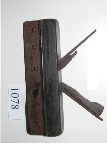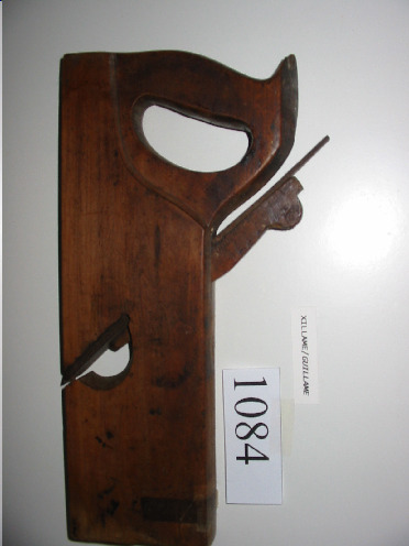 Ferramenta de madeira que ten na base unhas coitelas, unha de cada lado e un sentido contrario, unha delas fai a ranura e outra a lengüeta. Está reforzado cunha lámina de ferro atornillada ó madeira.