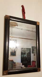Espello con marco en madeira. Na parte interior un ribete en bronce. Orixinariamente tiña nas catro esquinas un remate en mármore a modo de cantoneira.