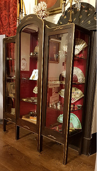 Vitrina de tres corpos e catro estanterías en cada un deles. Divido en tres rúas, a central máis elevada e rematada en forma curva. Tres portas con cristal biselado. Apoiada en oito patas afusadas. Leva decoración sobredourada de rameados incisos na cara frontal. Da casa Cabezas, en Chantada, froito dun encargo de don José Taboada Zúñiga, a xogo coas cadeiras tipo Chippendale tamén encargadas, copia das do XIX da Sala de Armas e Cuarto do Bispo.
