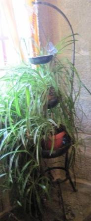 Paraugueiro en madeira de piñeiro con tres ocos para os paraugas, co frontal con debuxos incisos en forma de grilanda de reminiscencias pompeianas e con depósito en cinc. Remátase o corpo cun tímpano de volutas que flanquean un copete de palmeta. Nos extremos, cadansúa acrótera. Para apoio dos paraugas, unha varanda curva apoiada nun balaústre composto por dúas seccións troncónicas, moi afusadas, unidas por unha moldura lenticular.