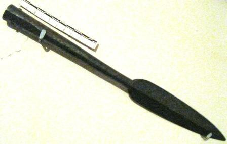 Puñal tipo almarada con empuñadura en madeira tallada e no lateral coa cabeza dunha aguia. Conserva aplicación vítrea para semellar os ollos. Folla moi estreita de tres aristas en ferro.
