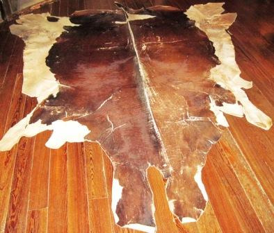 Alfombra en pel de vaca branca e marrón.