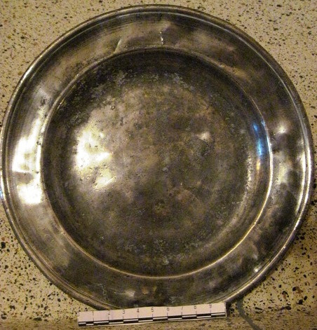 Prato fondo en peltre, de base plana, paredes curvas e ala lixeiramente recurvada, co seu borde destacado en arista concéntrica interior. Empregado para o xantar.