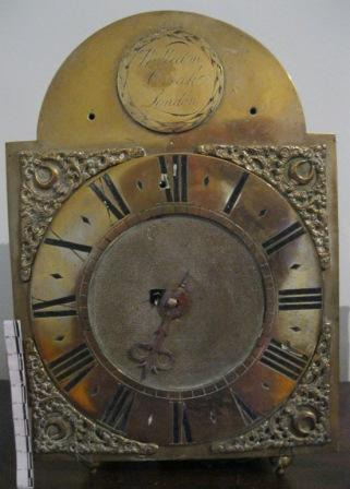 Reloxo con calendario de caixa alta da casa inglesa de William Dorrel (1784-1810), decorado no frontal cunha chinoiserie de repertorio, o ascenso a un dos cumios sagrados da China, de reflexos dourados e de gran calidade técnica. Consideramos que a caixa é anterior á maquinaria do reloxo, pois responde ao tipo xorxiano, moi semellante aos producidos por un Joseph Davis en Londres, cara os anos 40 do século XVIII. A decoración, en tons ocres sobre fondo negro, a base de superposición de lacas, executada de maneira lenta e delicada para alcanzaren o relevo adecuado, nunha superficia lisa e bruñida. Esfera cadrada con copete semicircular. Hai exemplares deste tipo no Palacio Barones de Valdeolivos (inv. V0166) e no Museo de los Relojes de Jerez.