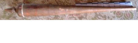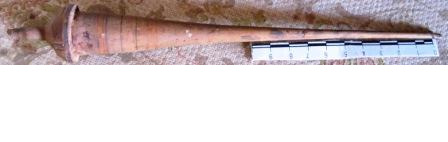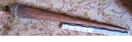 Punzón tallado en óso de balea con ornamentación xeométrica, sorte de collarín e a base de molduras convexas moi suaves que lle outorgan un perfil abalaustrado. Remátase na base en forma de landra. No outro extremo, en forma de rosca, de maneira que iría enroscado a outra peza. Empregábase para facer buratos no coiro, confeccionar prendas de lá ou para recoller o cabelo das mulleres. Posíbel traballo artesanal mariñeiro orixinario do porto baleeiro de Nantucket.
