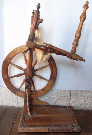 Máquina de coser de tracción manual por manivela (de madeira), marca Singer, modelo 27K, nº de serie R 56 63 32, decorada con motivos vexetais dourados esmaltados e litografiados no corpo e incisos na placa de feche dianteira (con debuxos incisos de acios de uvas). Conserva nunha placa a fecha de fabricación da patente, patent 1886, inda que foi un modelo fabricado até as dúas primeiras décadas do século XX.