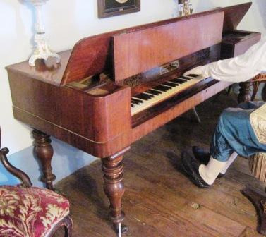 Piano forte de madeira de caoba da casa inglesa Collard & Collard, de cara o ano 1836-37, con teclado de marfil e apoiado en catro patas de madeira torneada rematadas con rodas. Conserva no interior as instrucións impresas para a súa correcta afinación.