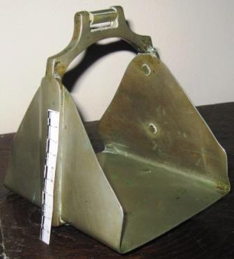 Albarda que se coloca enriba da suadeira que levaban os cabalos ou mulos ao lombo para suxeitar antigamente as liteiras, en coiro con catro aplicacións nas esquinas en metal repuxado con forma de flor e bañado en prata.
