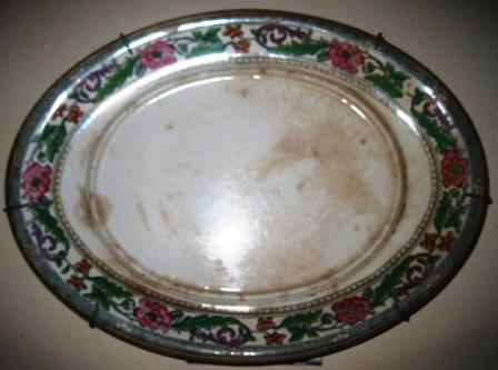 - Fonte en louza inglesa de forma ovalada, de cor branco e orla con motivos florais en tons verdes e rosas.