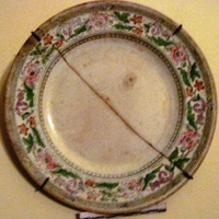 - Prato chan en louza inglesa, de cor branco con cenefa con motivos florais en tons verdes e rosas.
