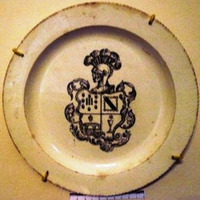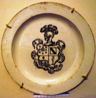 - Prato chan en louza inglesa branco e con debuxo a plumilla de D. Benxamín de Prado do escudo de armas de Mª Paz Taboada de Andrés y Zúñiga
