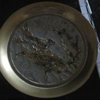 - Prato chan en bronce con debuxos de páxaros en esmalte.
