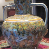 - Xarrón en cerámica de Ruiz de Luna (1863-1945), Talavera. Corpo decorado con motivos vexetais e animais, osos e panal de mel. Dúas asas.