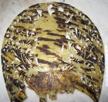 - Peita en plástico imitación a carei, con calado de motivos vexetais e no centro unha parella andaluza.