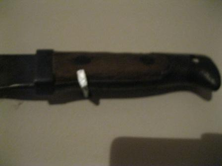 - Baioneta. Modelo tipo puñal para máuser alemán Segunda Guerra Mundial en madeira e ferro; folla dun só fío.