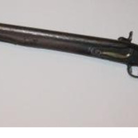 - Fusil inglés de avancarga adaptado a pistón con culata en madeira, gatillo en latón. Gravado coa marca de fábrica na platina.