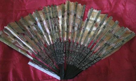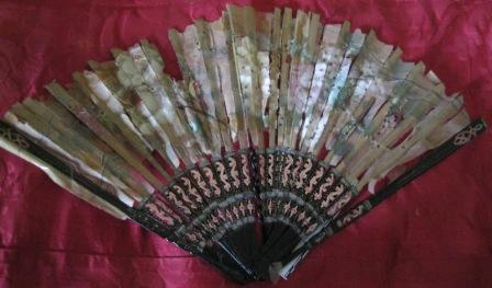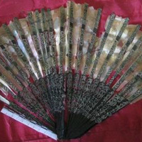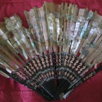 - Abano pregable, 25 variñas en madeira calada en tonos negros e país en gasa pintada a man con motivos florais e abelorios.