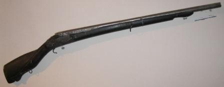 - Fusil de avancarga, culata en madeira, canón en ferro.