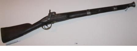- Trabuco de pedernal ou chispa adaptado a pistón, canón corto e acampanado. Culata en madeira e apliques en latón.