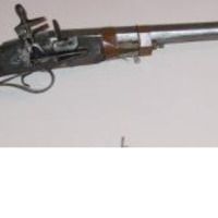 - Trabuco de pedernal ou chispa e avancarga; canón curto e acampanado en ferro e culata en madeira.