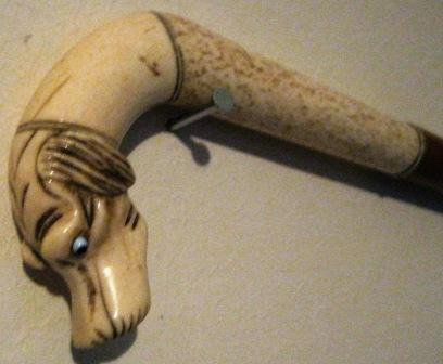 - Bastón co vástago de madeira e empuñadura curva coa cabeza tallada dun can en marfil cos ollos en pasta de vidro. Probablemente para uso nalgún acto no serán, cando era preceptivo aquel material na empuñadura. Salienta o regatón, tamén en marfil.
