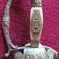 - Espadín de cinxir con empuñadura que consta de gardamán e gabiáns rectos con galluelo e concha volta, botón con forma de flor e gardamán con motivos vexetais e animais, cabeza de león. O filo presenta tres mesas.