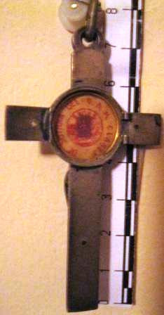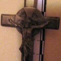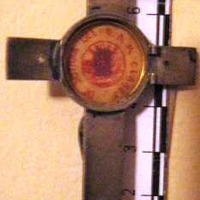 - Cruz relicario en metal branco; no reverso, unha reliquia pertencente á sotana de Santo Antonio María Claret (este foi canonizado en 1950).