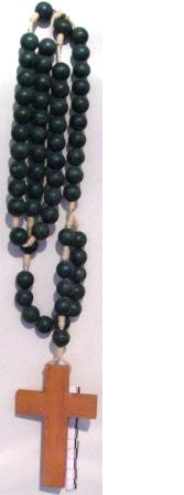 - Rosario con contas en madeira de cor verde e crucifixo tamén en madeira.