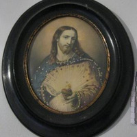 - Cromolitografía coa imaxe do Sagrado Corazón de Xesús: Cristo cardióforo de tres cuartos, co corazón ardente na esquerda surmontado por unha cruz. Segue o arquetipo iconográfico asentado por Pompeo Batoni. Marco ovalado en madeira de cor negro e no interior filete dourado.