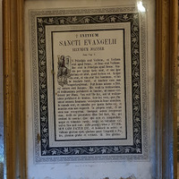 - Cadro que recolle o comezo do Santo Evanxeo en latín. Con marco en madeira dourada. Este cadro colócase no lado dereito do altar.