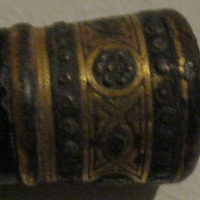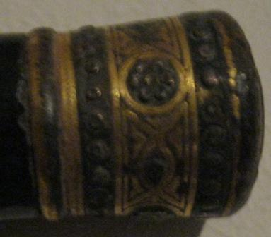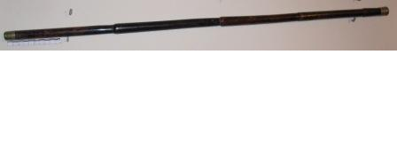 - Bastón co vástago en madeira e puño, simple pomo, en metal dourado con filigranas. Conteira no mesmo metal dourado.