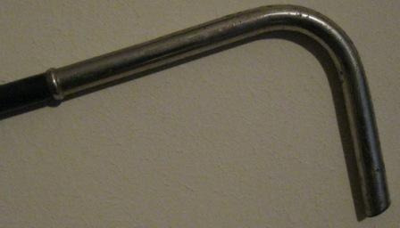 - Bastón de señora en madeira negra no vástago e con empuñadura, eleforme, e regatón en metal prateado. Pertenceu a Pura Cuenca.