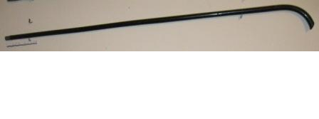 - Bastón de señora en madeira negra, coa súa empuñadura en forma de tímida ele e con regatón metálico.