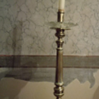 - Facheiro en bronce con pé triangular rematado en gadoupas coas imaxes do Sagrado Corazón de Xesús, de María e de Xesús Mozo portando a cruz. Vástago acanalado con estrangulamento na macolla.