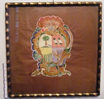 - Acuarela, quizais de Benjamín de Prado, que representa un escudo cos apelidos: Quiroga de la Puebla, Losada, Valcárcel e Garza. Marco en madeira sobredourada.