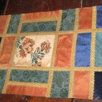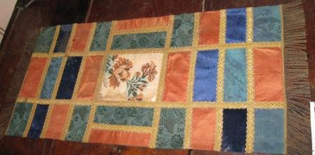 - Tapete feito con anacos de tea en damasco e veludo rematado con pasamanerías e flecos dourados.