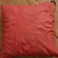 - Coxín en tea de seda natural en cor granate, nunha esquina pequeno adorno con pasamaneria.