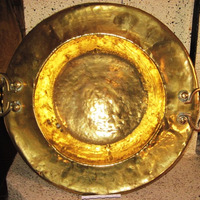 - Braseiro en bronce dourado con dúas asas de perfil bilobulado do mesmo material. Posíbelmente sexa a bacía dun braseiro de caixa.