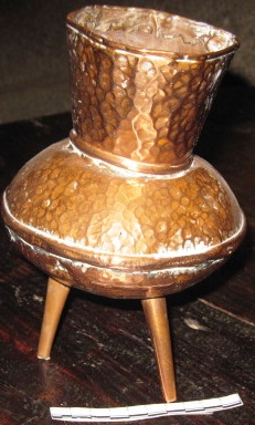 - Floreiro en cobre con forma de pote e apoido en tres pés.