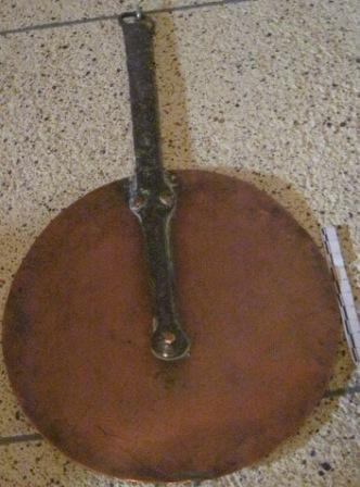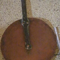 - Tapadeira en cobre, forma circular e mango en ferro