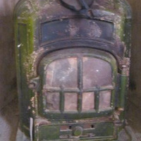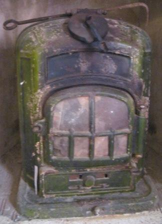 - Estufa tipo salamandra do fabricante de orixe mallorquina Joan Mas Bagá (con tenda en Valencia e Barcelona) para leña ou carbón en ferro de fundición, esmaltada en verde. Boca de carga dunha porta e visor de mica.