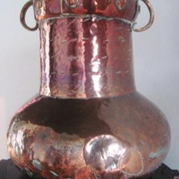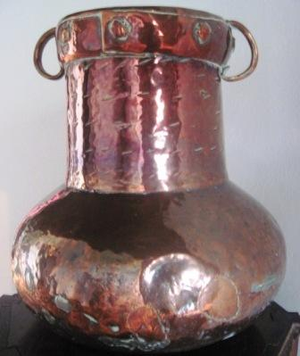 - Ánfora en cobre con corpo ovoidal, colo estreito e dúas pequenas asas.