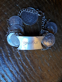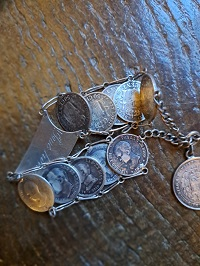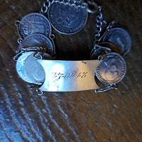- Pulseira feminina composta por moedas de 10 céntimos de peseta de Alfonso XIII (con data de acuñación de 1910) e unha peseta peruana acuñada en 1880, unidos a unha cadea sinxela mediante argolas e a unha placa lisa trapezoidal de lados curvos cuxo campo leva a inscrición en cursiva, quizais de lectura apotropaica: "¡Qué horror!"