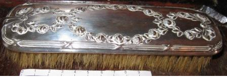 - Cepillo para a roupa en prata repuxada con grilandas florais (rosas e lazos).