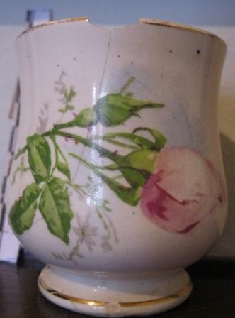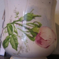 - Vaso en cerámica branca, decorado con motivos florais (dúas rosas) para a hixiene bucal.