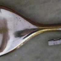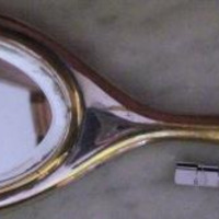 - Espello de toucador en metal bañado en prata e as iniciais gravadas "MM"(Mª Paz e Miguel Angel)